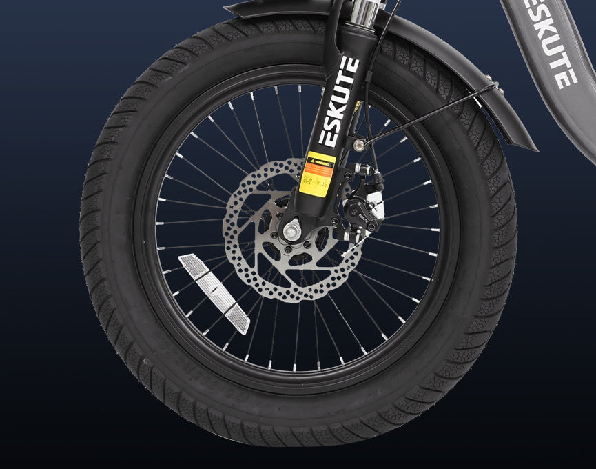 Specially designed for beginners, the Eskute T300 features extra-wide 18-inch diameter, 3.0-inch thick fat tires that provide exceptional stability to prevent tipping. These premium tires offer superior all-weather traction on both wet roads and loose gravel, while their thick, cushioned construction absorbs shocks and vibrations for an ultra-smooth, comfortable ride - ensuring every journey is safer and more enjoyable for users.