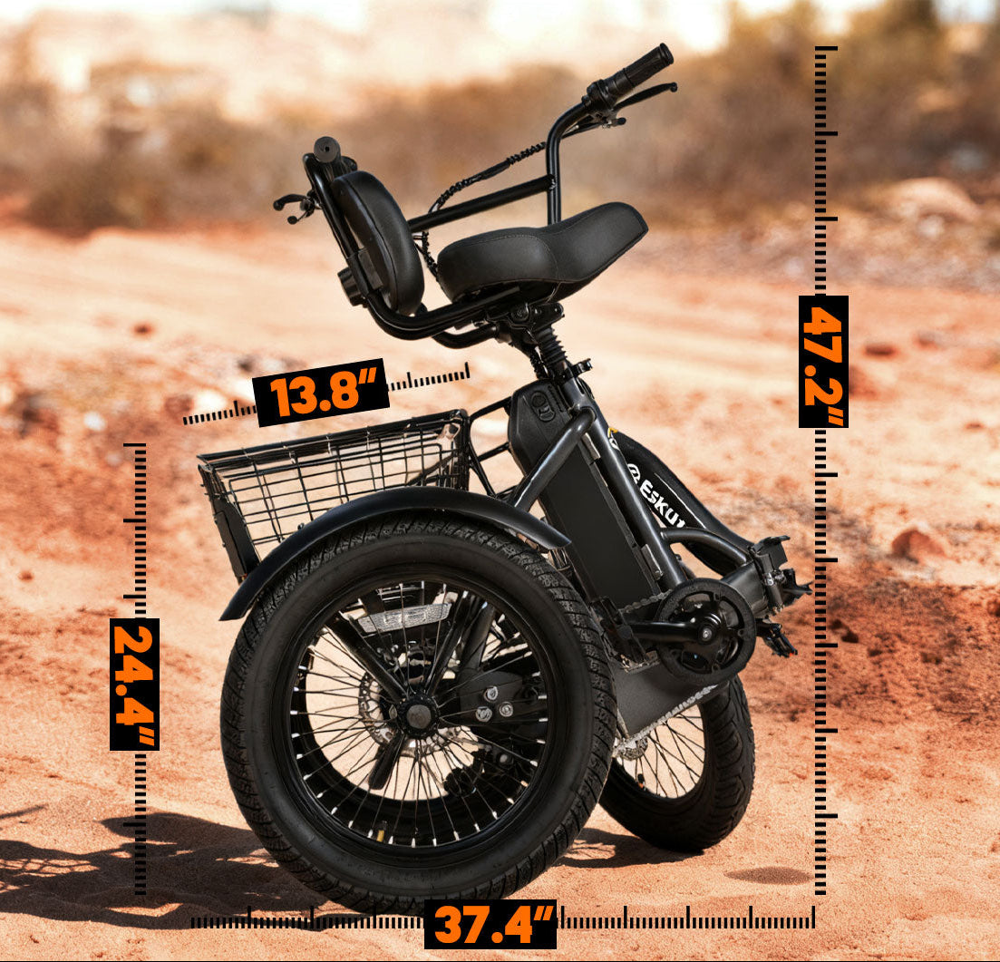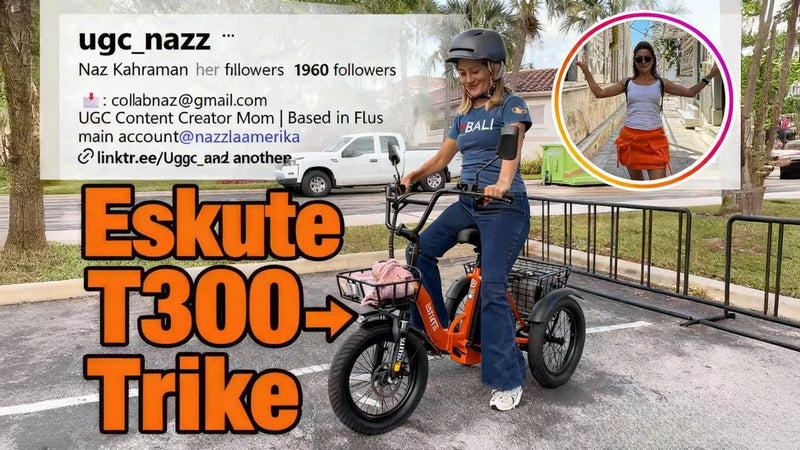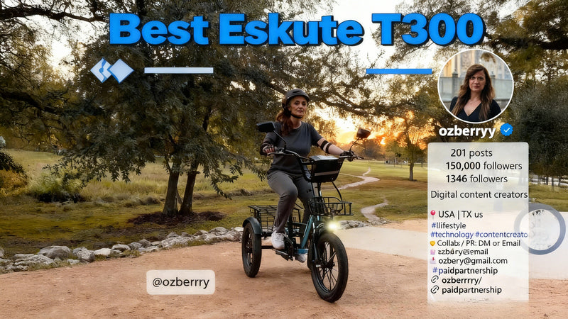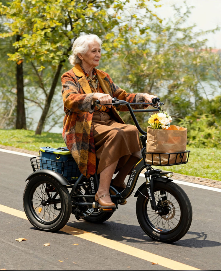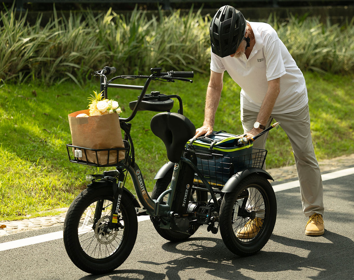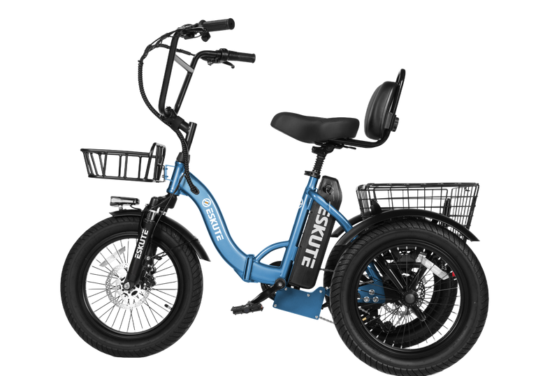The Eskute T300 Folding Electric Trike is designed for convenience and comfort, making it the perfect companion for leisure riders to enjoy outdoor activities and connect with nature.