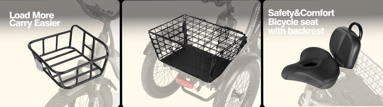 Load More, Carry Easier Durable front and rear cargo baskets for maximum capacity.